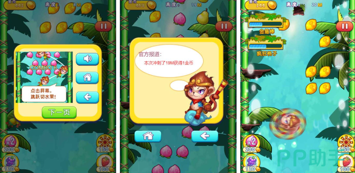 创新采用垂直向上跑酷机制,区别于传统横版设计。玩家需持续向上跃升,同时精准划动屏幕切割迎面而来的各类水果,每成功切中即获得积分与金币奖励。玩法融合跑酷的节奏控制与切水果的手势反馈,形成双重操作维度,在保持跑酷紧张感的同时注入解压式互动乐趣。