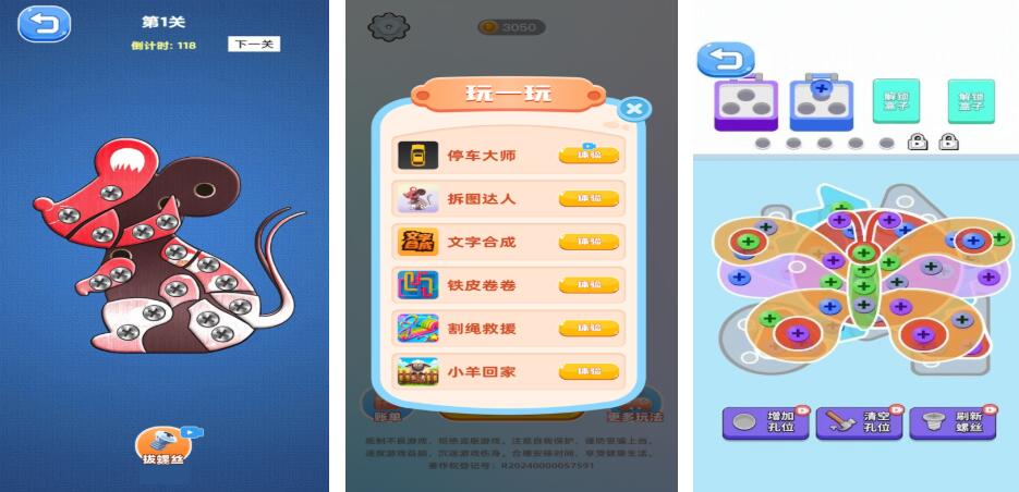 采用模块化关卡设计,每关围绕一个核心物理或逻辑机制展开。例如螺丝拆卸需考虑力矩顺序与约束条件;赶羊任务考验路径规划与时机把控;停车场谜题强调空间预判与步骤倒推。多类型玩法交叉嵌套,避免重复疲劳,维持长期可玩性。