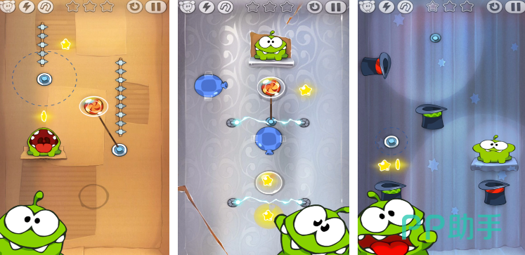 经典物理模拟益智作品,核心目标是通过精准切割绳索,引导糖果落入怪物奥姆诺姆口中。关卡中融入滑轮、气流、重力弹射等真实物理元素,辅以吹风机、火箭推进器等交互道具,拓展解法多样性。美术风格简洁清新,音效细腻富有节奏感,对观察精度、预判能力和步骤规划提出综合要求。