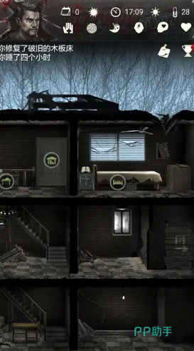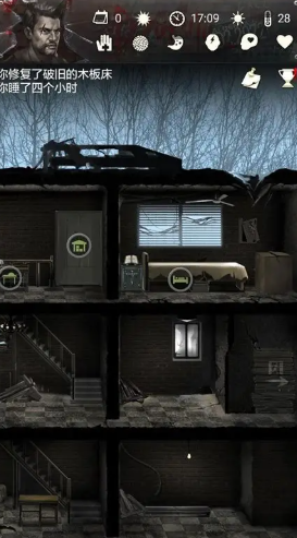 本作采用手绘暗黑美术风格,视觉辨识度鲜明。开局即置身荒野,无初始装备、无补给来源。白天需采集木材、燧石、草绳等基础材料,搭建避难所、制作工具、储备食物;夜间则面临影怪袭击,必须依靠火把、营火或照明设备维持安全。四季更替带来显著机制变化——春季多雨易引发霉变,夏季高温致角色脱水,秋季相对平稳但需为寒冬囤积资源,冬季严寒则大幅加快体温流失。全程强调周期性规划与资源复用逻辑。