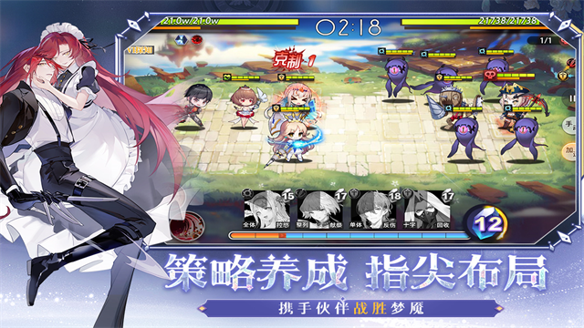 本作以多重梦境为叙事舞台,玩家扮演“链接者”,在九大风格迥异的梦境地图中,与高智商梦魇展开回合制对抗。游戏采用高饱和度二次元美术风格,角色卡牌立绘兼具艺术性与辨识度;职业体系内置多层共鸣机制与联结分支系统,支持组合技推演与阵型动态调整,强化战术纵深感。