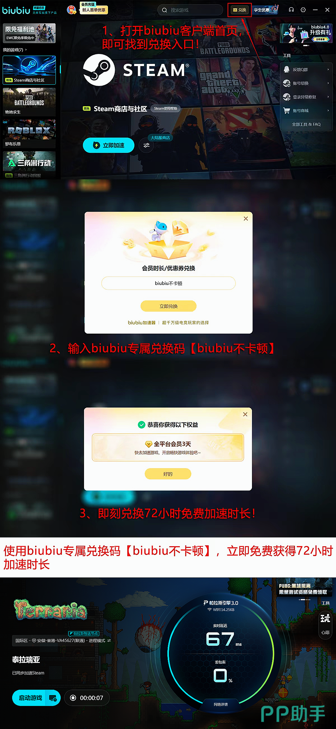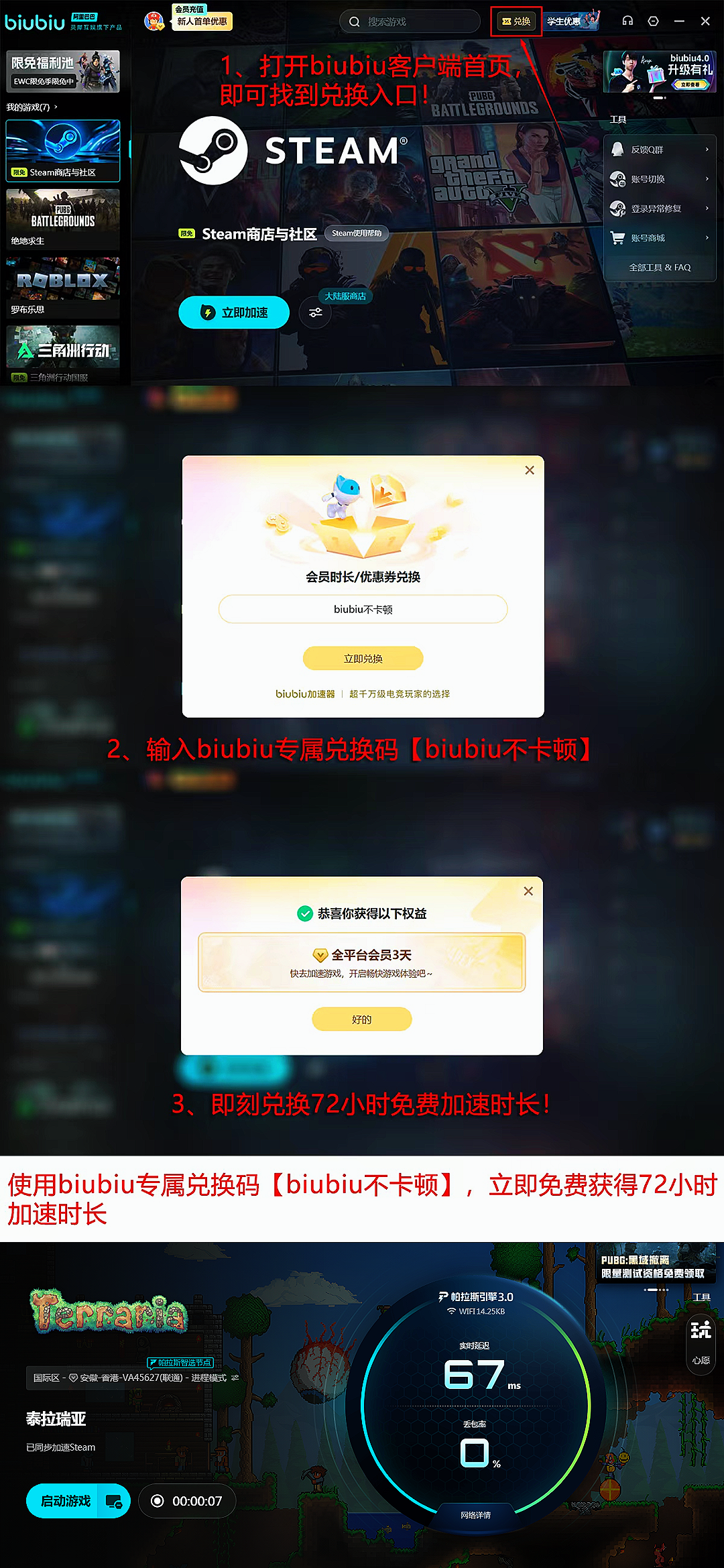 《泰拉瑞亚》原生支持跨区域多人联机,不少玩家倾向接入海外服务器以拓展社交圈层并体验差异化游戏生态。但受限于物理距离与跨境网络节点质量,国际服连接常伴随高延迟、丢包率上升等问题,进而诱发客户端崩溃。biubiu加速器已覆盖主流国际服节点,提供与国服相近的低延迟加速环境,且对《泰拉瑞亚》等热门沙盒游戏具备专项优化策略。新用户注册后可即时领取24小时免费加速时长;输入兑换码【biubiu不卡顿】还可额外获得3天使用权,新用户累计最高享96小时加速服务。