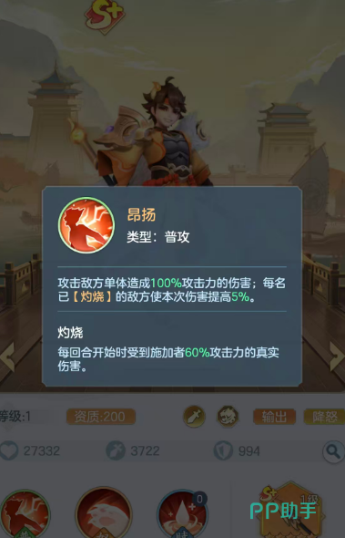 普攻方面,孙策每次命中均可为目标施加一层“灼烧”状态。该状态按孙策自身攻击力的5%转化为真实伤害,并在每回合开始时,对所有处于灼烧状态的敌人造成相当于其60%攻击力的真实伤害。这一机制不仅强化了持续消耗能力,更与高频技能释放型队友形成良好协同,尤其适用于对抗高爆发或高续航敌方阵容。