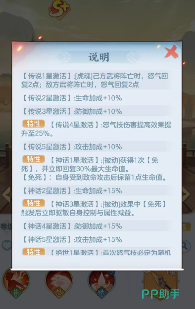 天赋系统亦为孙策提供关键续航支持:一星天赋即可激活“双怒气”机制——当己方有武将阵亡时,孙策将自动积累两层怒气。该设定极大优化了怒气循环稳定性,确保其在中后期团战中能保持高频技能释放节奏,持续输出压力。