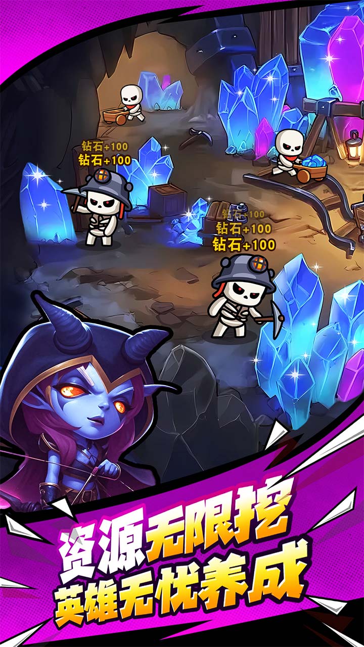 本作创新融合塔防机制与卡牌驱动式战斗系统。玩家需在固定地形上部署防御塔,并同步召唤具备独立行动逻辑的英雄卡牌——其技能涵盖范围伤害、控制打断、治疗增益及地形改造等类型。敌方波次具备明确进攻路径与属性弱点,要求玩家实时调整卡组配置、技能释放时机与资源分配优先级,形成动态平衡的防守策略闭环。