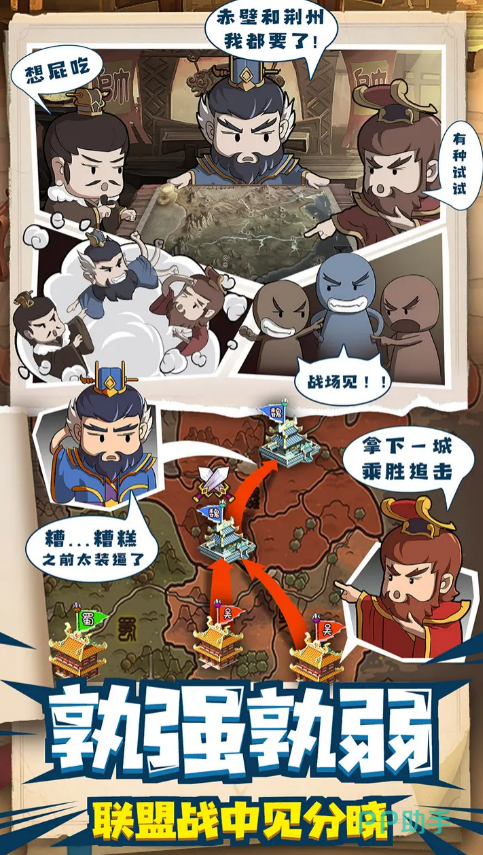 创新融合兵种协同与权谋叙事系统。武将按骑兵、弓兵、步兵、器械四大兵种划分,存在克制关系与阵型加成,同一阵容可配置主将+副将+策士三层指挥结构。主线剧情嵌入东汉末年政治生态演变,玩家抉择影响势力声望、人才投奔倾向与资源产出效率。战斗采用六宫格战场模型,技能范围、移动距离、地形障碍均参与运算,需提前规划走位路径与集火顺序,确保关键目标被有效压制或保护。