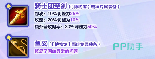 然后是装备调整得到加强的有骑士团圣剑和鱼叉,圣剑物攻从10%变为25%,攻速从20%变为10%,额外普攻概率从30%调整到50%,鱼叉解决了回血异常的问题,装备被削弱的有黄金圣杯和古董火铳,火铳的物攻从20降低到15,法攻从20降低到15,暴击率从30降低到20,暴击时法力恢复从4降低到3。