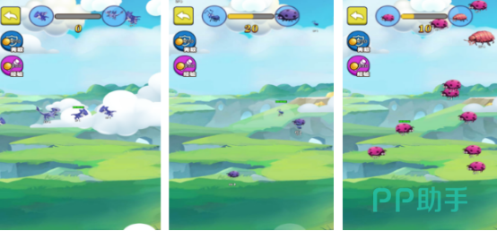 采用“弱肉强食”生存机制,玩家操控基础昆虫单位,在开放地图中主动追击并吞食体型更小的目标生物,实现即时体型增长与形态跃迁。每完成一次吞噬行为,系统同步发放金币奖励,用于解锁全新虫种图鉴、升级攻击范围、调整扫射角度及强化移动机动性。战斗强调地形卡位与安全距离压制,配合动态成长曲线,构建差异化的战术养成路径。