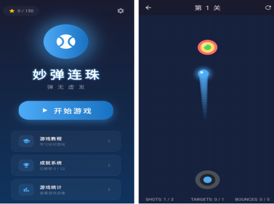 核心玩法聚焦物理弹射精度——玩家通过拖拽调整发射角度与蓄力时长,控制弹珠在多面墙体间反弹,最终精准命中目标。关卡结构层层递进,相较传统弹球类游戏增加反射路径预判与时机把控维度。内置分步式教学引导,帮助新手快速掌握弹射逻辑与反弹规律。全内容本地加载,离线状态下完整保留所有关卡与功能。
