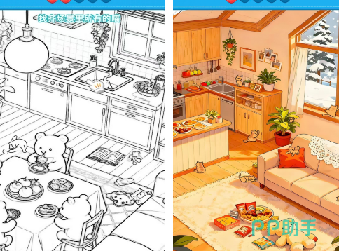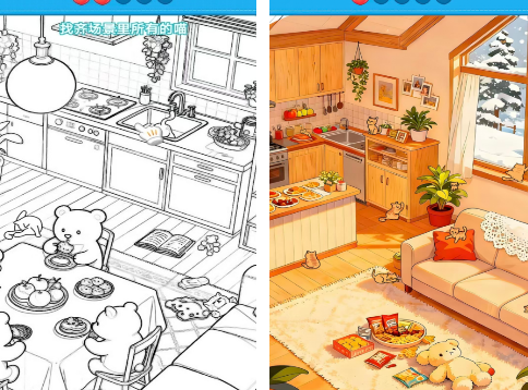 采用细腻手绘风格构建多层找茬场景,每一帧画面均隐藏多个差异点,考验观察细致度与图像比对能力。游戏取消倒计时机制,允许玩家自由控制节奏,在静心浏览中逐步发现细节差异。关卡数量充足,内容完全本地化部署,安装后无需额外资源包加载,真正实现“零等待、零联网”体验。