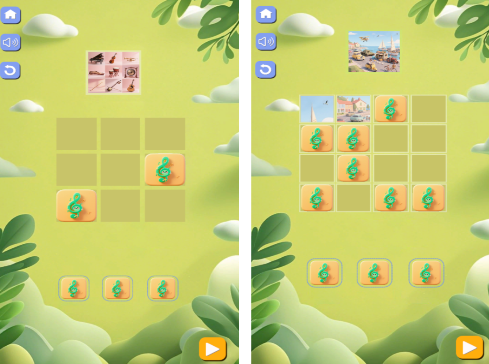 突破传统视觉拼图框架,首创听觉驱动型解谜模式:每个拼图碎片附带独特音频标识,玩家需通过反复聆听音色、节奏与音高特征,将碎片放置于匹配声场位置完成构图。随着关卡推进,音频线索复杂度提升,对声音辨识力与空间联想能力提出更高要求。全部音频资源预置终端,离线状态下音质无损、响应即时。