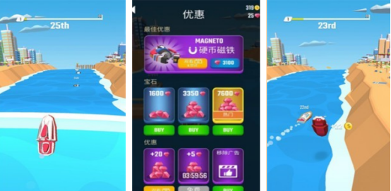 主打极简操作逻辑与高自由度竞速体验。提供单人闯关、计时挑战与观战模式三种玩法入口。所有赛道均基于真实海洋地貌建模,涵盖浅湾、峡湾与公海等多样化水体环境。基础操作仅需点击加速,结合智能路径提示与自适应避障机制,降低上手门槛,同时保留高速过弯与浪尖腾跃的核心爽感。