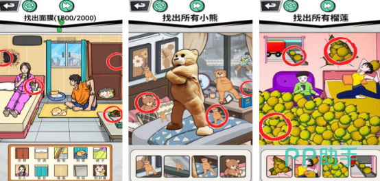 经典视觉搜索玩法升级版。每关提供一幅细节丰富的手绘场景图(如客厅、厨房、游乐园),图中隐藏若干指定目标物品(例如10只大小不一、姿态各异的跳舞小熊),玩家需凭借观察力逐一发现并点击标记。关卡总数超150,部分目标采用透视、遮挡、色彩融合等隐蔽设计,提升挑战性。完全离线运行,不依赖GPU渲染,适配2015年后主流中低端机型。
