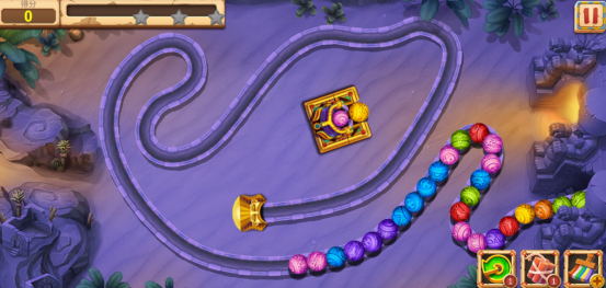 延续祖玛核心机制:彩色珠链沿预设轨道匀速推进,玩家操控炮台发射同色珠进行配对消除。三颗及以上同色珠相连即触发连锁反应,消除范围越广、连击次数越多,得分加成越显著。关卡难度随进度阶梯提升,轨道复杂度与珠速同步增加,强调预判与快速决策能力。