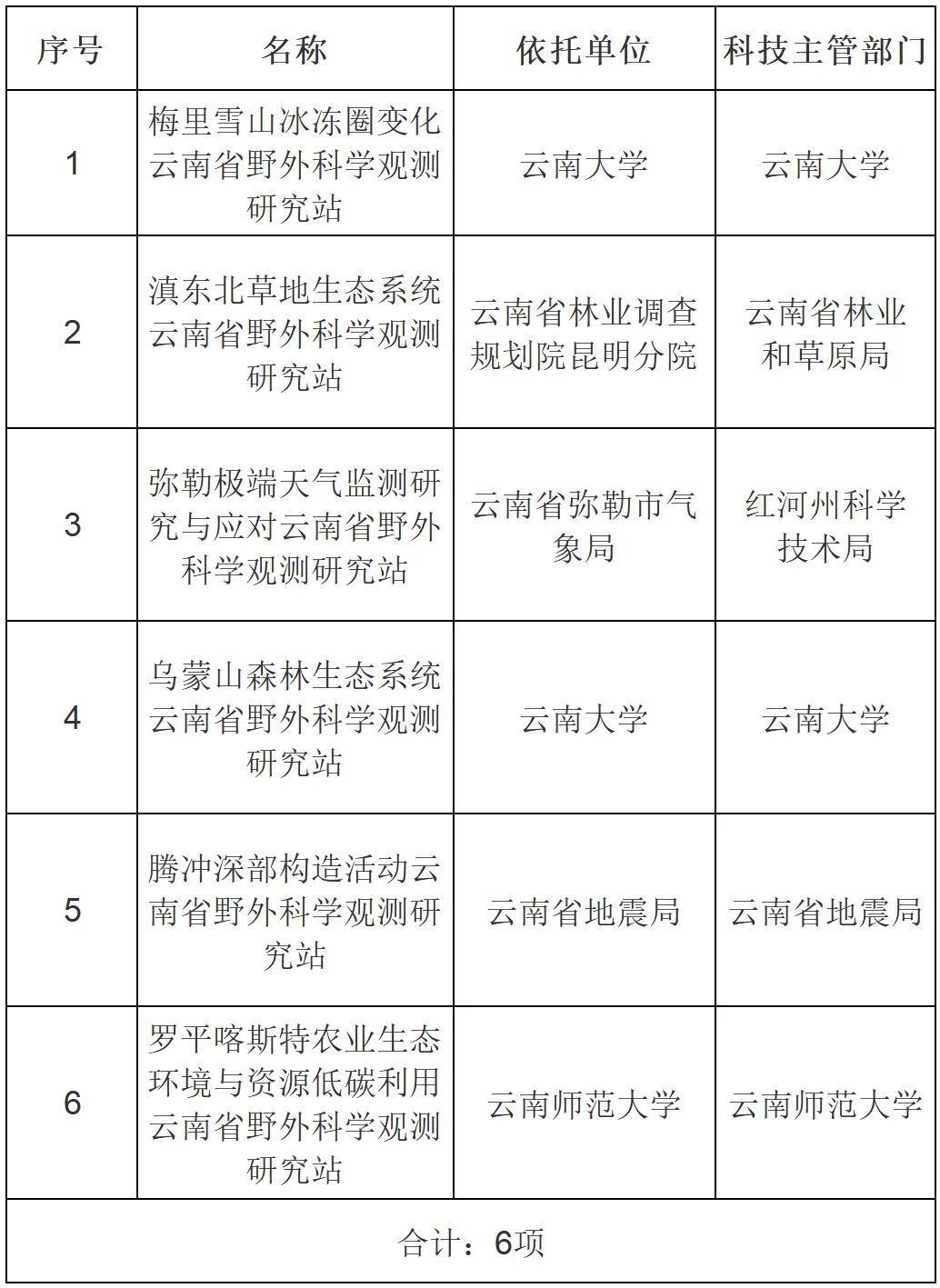 原标题:云南拟批准建设6个省野外科学观测研究站