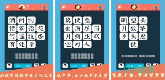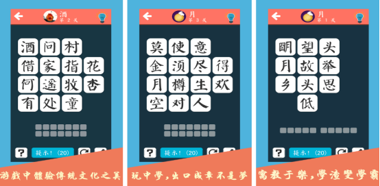 将传统文化传承与解谜机制深度融合。每关设定主题关键词(如“月”“酒”),屏幕随机打乱相关诗句中的汉字,玩家需按原诗顺序正确排列。题库覆盖课标推荐古诗篇目,兼顾经典性与适龄性,有效提升古诗文识记效率与语感培养效果。