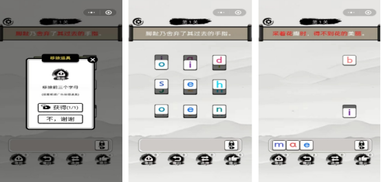 本作以26个汉语拼音字母为基础,创新融合三消机制与汉字拼合逻辑。玩家需按提示拖动字母至底部格子,组合成完整汉字即可消除。规则明确:单次合成所用字母总数不得超过8个,超限未完成则判定失败。操作直观,反馈及时,有助于强化音形义关联记忆。