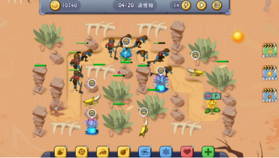 该游戏创新性地将塔防与植物精灵育成体系结合。玩家作为训练师,需收集、培养具备不同属性的植物精灵,并通过杂交系统解锁稀有品种。每种精灵可部署为独立防御单元,拥有专属攻击模式与协同加成效果。核心目标围绕守护向日葵本体展开,兼顾生态建设与战术防御双重维度。