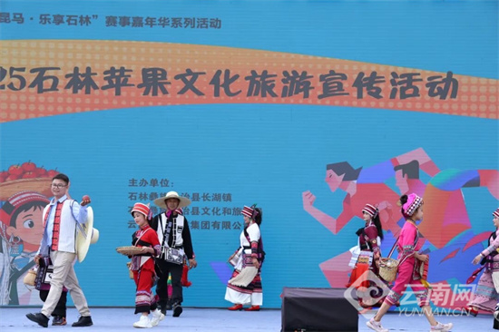 活动现场举办了石林苹果文化旅游宣传活动和非遗项目“狮虎舞”争霸赛,国家级非物质文化遗产——大三弦舞点燃了现场观众的激情与欢乐,喜迎丰收的当地群众身着传统民族服饰,自信登台走秀展示,“猛虎”发威、“雄狮”跳跃、“绣场”闪亮,尽显石林人民对优秀文化传承的不懈追求和勤劳勇敢、阳光向上的精神面貌。