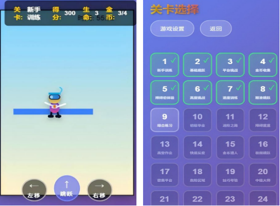 一款强调操作节奏感的平台跳跃游戏。主角佩戴护目镜,在由不同高度平台构成的关卡中完成左右位移与精准起跳,目标是收集散落金币并抵达终点。游戏物理引擎、关卡结构、BGM音轨及触控反馈模块全部本地化,无实时网络校验机制,即使处于飞行模式亦可流畅运行全部50+主线关卡。