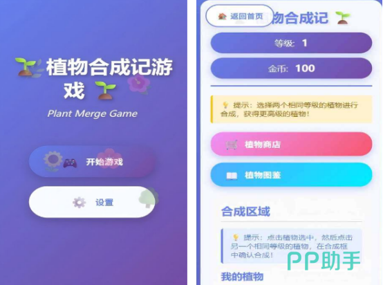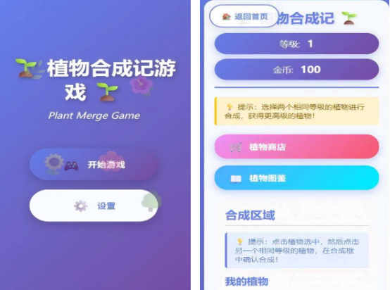 采用极简UI设计的植物进化类合成游戏,所有植物模型、生长动画、合成规则及背景音乐均打包于安装包内。玩家通过两两合并同等级植物(如种子+种子→幼苗,幼苗+幼苗→成熟植株)推动物种升级,界面支持自定义色调与音频开关,全程不访问外部资源服务器,离线状态下可完整体验全部合成路径与图鉴收集系统。