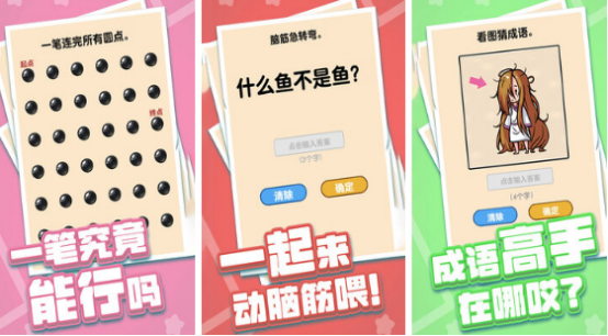 专注脑力开发的益智解谜合集,含看图猜成语、一笔画连线、救援类情境推理等多元模式。单关设计强调非常规思维路径,鼓励逆向推导与联想拓展。当前版本已上线超200个原创关卡,覆盖语文素养、空间感知、问题拆解等多维能力训练目标。