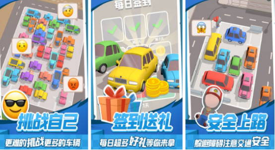 高拟真度车辆调度类解谜游戏,场景建模贴近现实停车场结构,操作反馈细腻——包括车身倾斜、碰撞震动、轮轴转向等物理表现。关卡设计融合双向通行、旋转平台、限时移动等机制,持续提升挑战维度。通关后获取金币资源,用于解锁科幻风、复古风等主题皮肤,构建专属解谜环境。