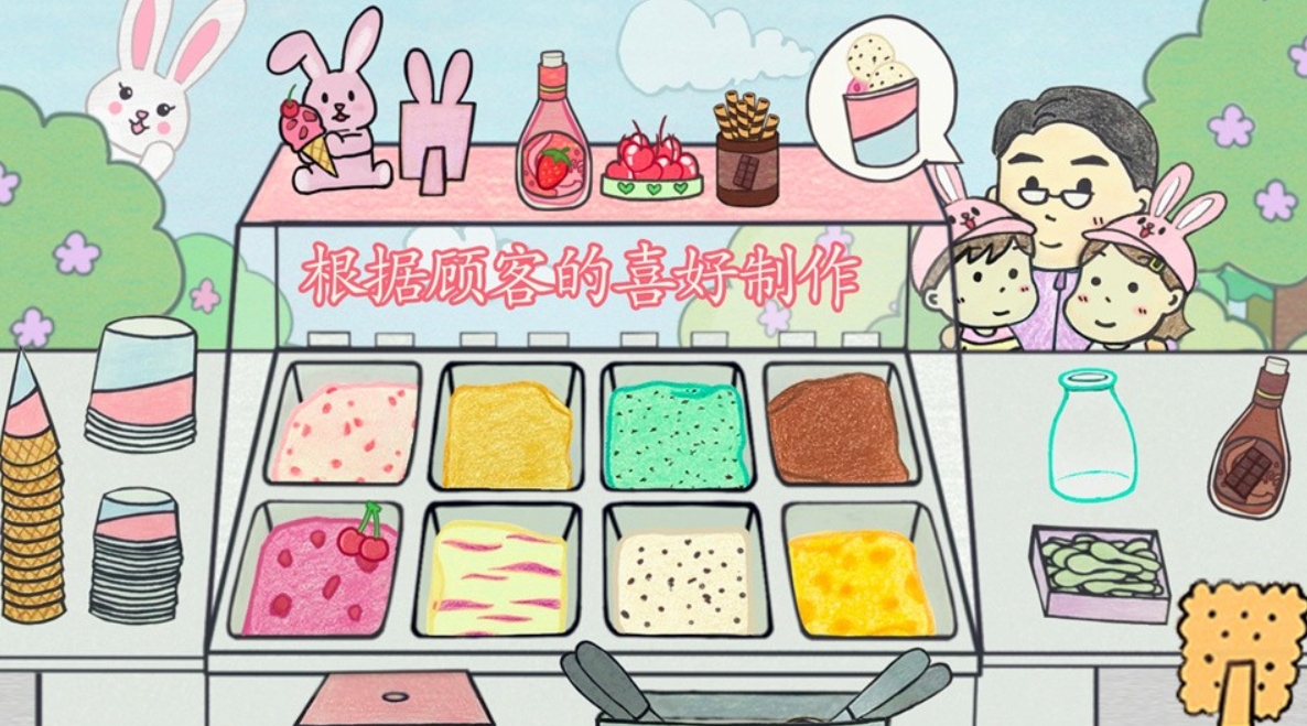 以夏日街边摊为场景,强调即时反馈与操作精度。每位顾客仅提供一张参考图示,玩家须在限定时间内准确复刻对应造型、配色与配料组合的冰淇淋——包括蛋筒样式、球体数量、浇头种类及装饰物位置。成功出单可获得金币与好评,失误则导致顾客流失,影响当日营业额与店铺评级。