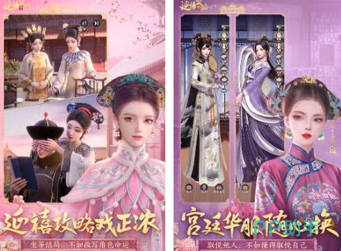 基于热门影视剧《延禧攻略》世界观深度开发,美术风格融合清宫档案考据与现代审美元素。主角初始身份为低阶宫女,需通过绣坊任务、御前应答、节庆献艺等多样化玩法积累声望值,逐步解锁高位妃嫔权限。服装库包含乾隆时期典型纹样与工艺复刻,如缂丝、点翠、云肩等细节均按史实建模,支持动态试穿与社交展示功能。