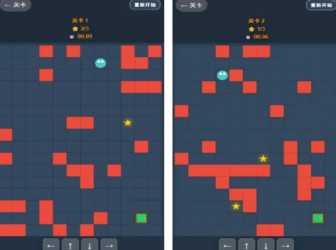 轻量级益智闯关游戏,采用经典四向按键操作逻辑。玩家需引导角色在几何化场景中收集散落的星星,每关路径设计融合视觉错觉与空间推理要素。全系列包含数百个递进式关卡,所有碰撞检测、计分规则与存档系统均基于本地存储实现,完全脱离服务器交互。