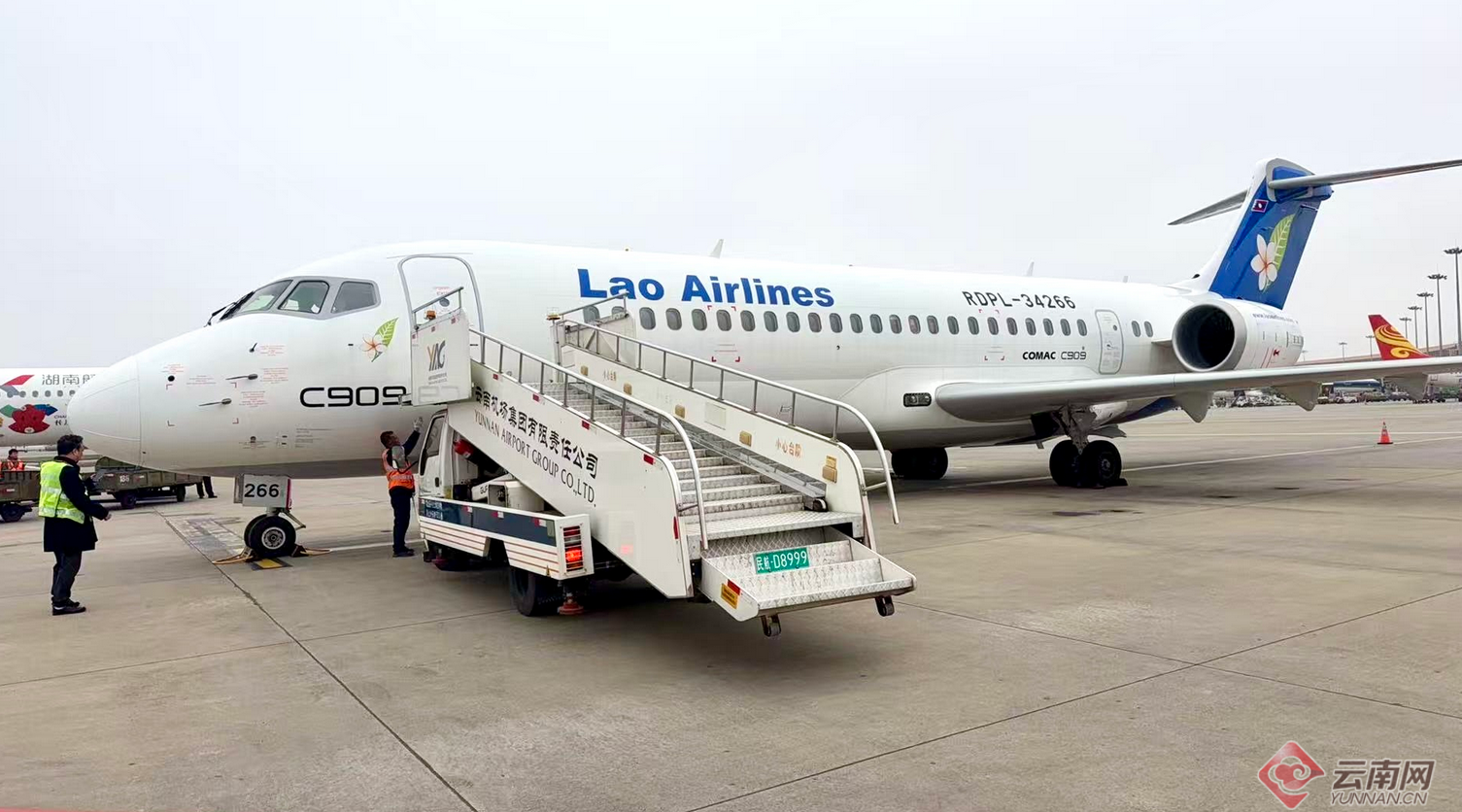 近日,由老挝航空执飞、搭载55名旅客的C909国产飞机从老挝万象起飞,平稳降落抵达昆明长水国际机场,这是外国航空公司首次使用国产飞机执飞昆明航线,标志着国产飞机执飞国际航线在云南正式开通,迈出中国制造民用飞机拓展国际市场的重要一步。