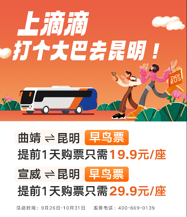 云南网讯(记者 彭锡)为进一步提升城际出行服务质量,更好地满足旅客出行需求,9月26日起,曲靖交通集团携手滴滴出行正式开通昆明往返曲靖、宣威的滴滴站点巴士客运专线。该专线以便民、利民、惠民为宗旨,为广大旅客提供差异化、精准化、高端化的出行服务,打造安全、实惠、多元化的“城际出行快车道”。