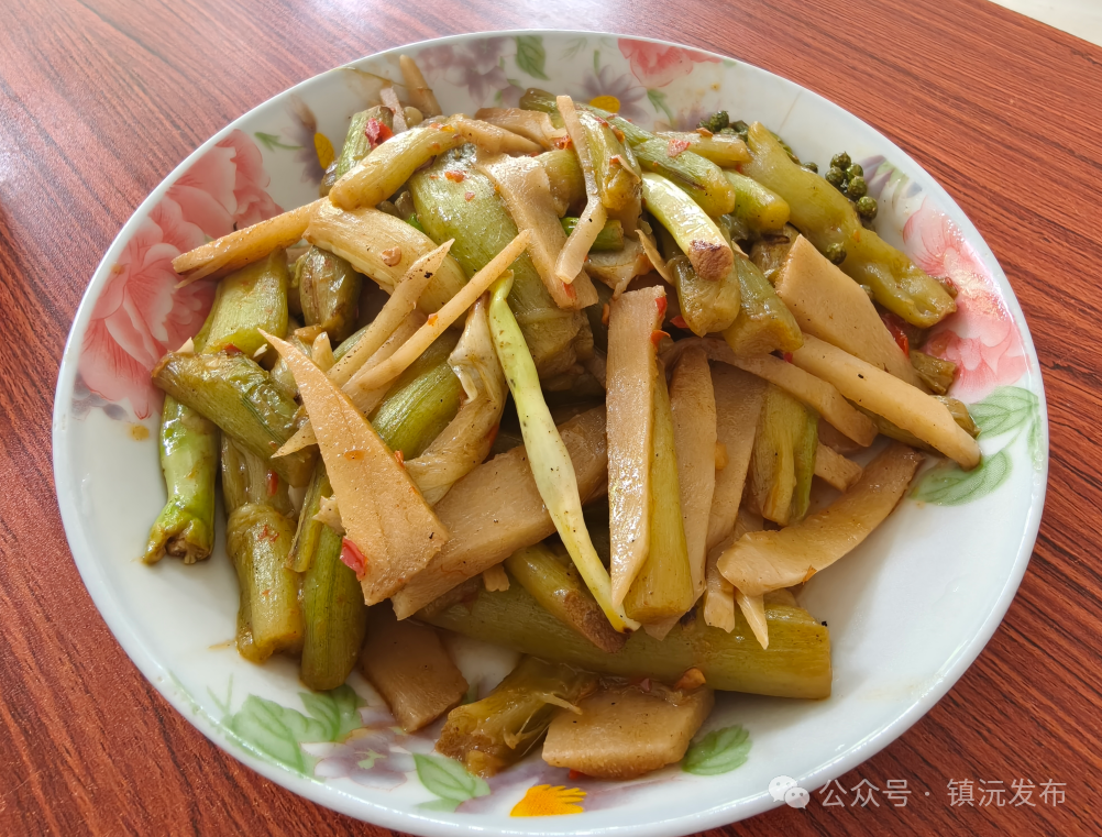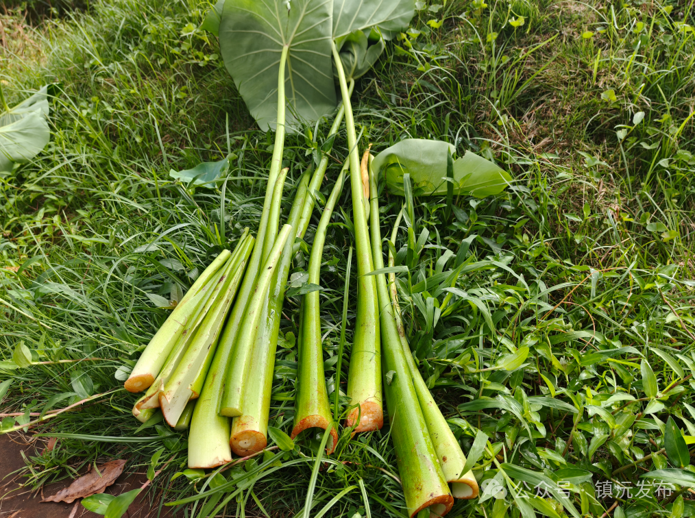 水芋秆是长于水边或湿地的芋类植物的茎部,外表翠绿,质地脆嫩,镇沅人常常把新鲜的芋秆做成各式菜肴,酸笋炒芋秆和香煎芋秆饼是较为常见的做法。