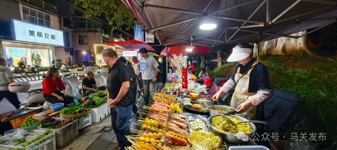夜色如墨,灯火如织。每晚19时至凌晨,马关县安平广场旁的夜市准时开启它的人间烟火模式。烧烤的香气弥漫街巷,铁板上生蚝滋滋作响,越南小卷粉在巧手中翻卷成型……这里,是市民散步路上的小食摊,更是一幅生动鲜活的城市民生图景。