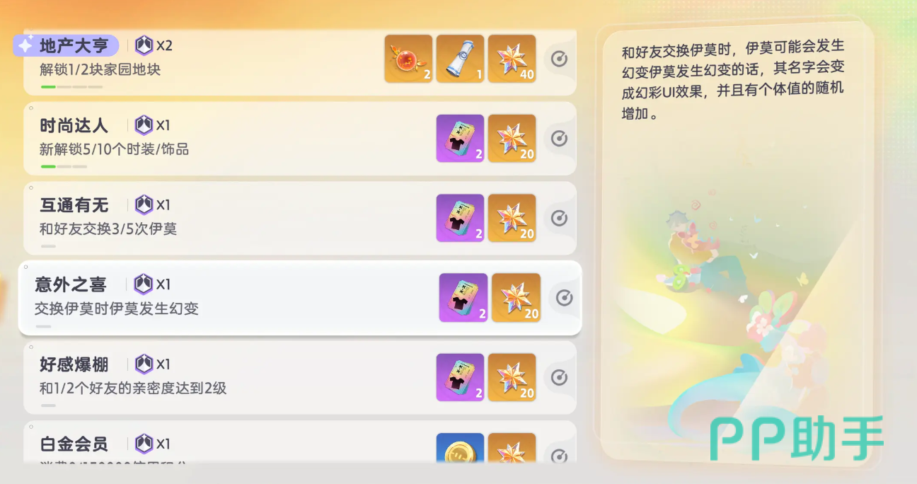 其实幻变是一个特殊机制,在游戏之中大家可以和其他的玩家交换伊莫,在交换的过程中伊莫就有很多出现幻变形态,此时名字会变成下图这样的彩色,并且增加体力值,同时还可能提升品质,所以大家可以多多试着和好友交换。