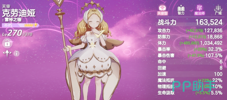 该角色核心机制围绕“增益层数”进行,自身如果累积获得6层增益,就可通过“圆斩”这个招式强制触发100%暴击,并将对手身上4层增益效果清除,额外给敌人添加眩晕;大招同样拥有暴击效果,还能固定恢复5000的魔法值,她就比较适宜在高协同性阵容中使用,也正是她的能力,让其不管是在队伍中,还是个人,都拥有很高的操作上限,战斗发挥威力强大。