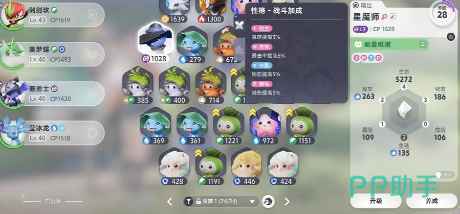 这款伊莫里的宠物的性格与同类型游戏区别较大,伊莫这里的性格所提供的并不是传统的一项增益一项减益,而是四项5%的增益,在游戏里手以MBTI的形式呈现的。