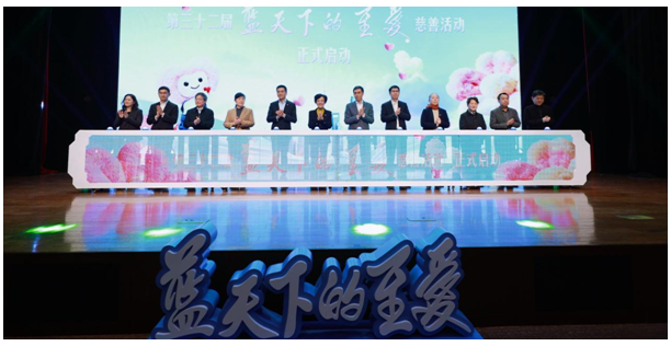 开幕式现场,上海市慈善基金会理事长钟燕群,上海市委宣传部常务副部长、市精神文明办主任滕建勇,上海市慈善基金会监事长施涛,上海市民政局副局长娄国剑,上海市红十字会党组成员、副会长刘光雯,上海市老年基金会副理事长兼秘书长孙萍,上海市志愿服务上海市残疾人福利基金会秘书长姚惠倩,上海荣昶公益基金会理事长马晓燕,第一财经总编辑杨宇东,共同启动了本届“蓝天下的至爱”慈善活动。