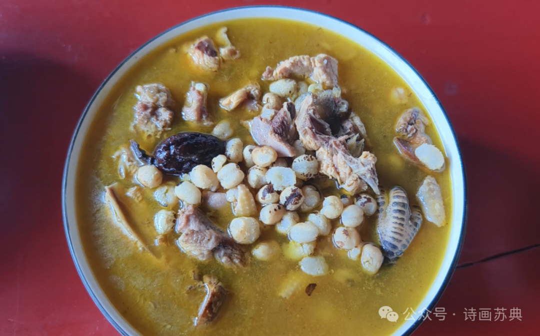 而竹米最地道的吃法,当数竹米炖土鸡。将处理好的鸡肉与竹米一同入锅,加山泉水慢炖。随着“咕嘟咕嘟”的声响,竹米的清甘与鸡肉的醇厚渐渐相融,汤色清亮,香气透过锅盖的缝隙钻出来,勾得人食欲大开。起锅时无须过多调味,仅少许盐便足以激发两者的本味。鸡肉酥烂脱骨,竹米吸饱了肉香,入口软糯又带着一丝清甜,每一口都是山林的纯净与食材的本真在舌尖绽放。