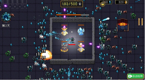 采用低多边形复古视觉语言,操作简化至双键控制(移动+施法),适配移动端单手操作习惯。包含6个主线章节,每章设普通、精英、噩梦三级难度关卡,总计逾120个独立场景。怪物波次递进式增强,最终Boss战需应对多阶段技能循环与场地机制变化,考验资源管理与反应节奏。