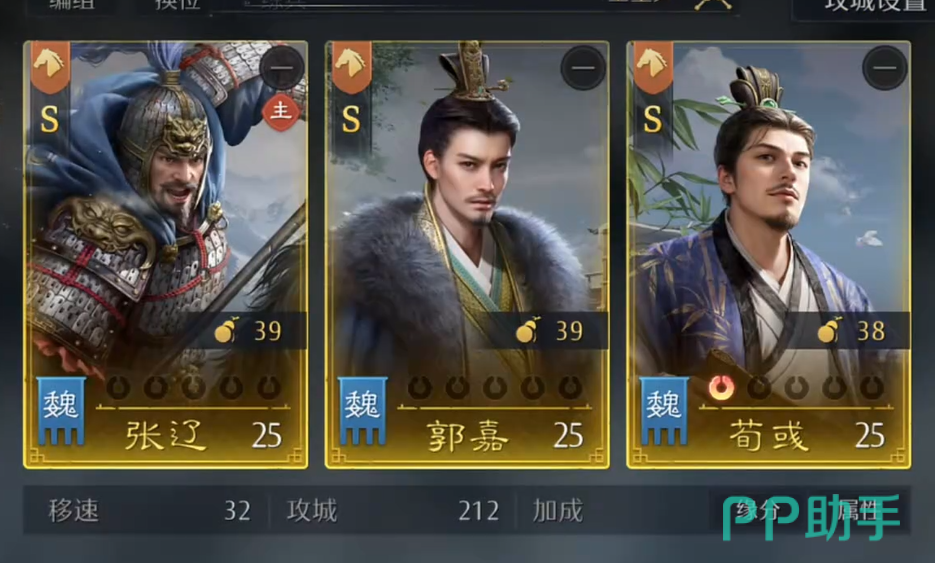 今天为大家深度解析一套当前版本中表现极为强势的魏国法师骑兵混合阵容——九牧之野魏法骑体系。该阵容由张辽、郭嘉、荀彧三位核心武将组成,主打高频率连击联动与谋略爆发双轨输出,在实战中展现出极强的节奏压制力与伤害持续性。尽管部分技能细节尚在持续优化中,但多轮实测已验证其整体稳定性与上限潜力均处于梯队前列。
