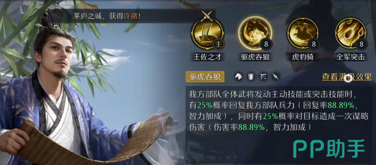 伤害节奏之所以迅猛,关键在于荀彧“驱虎吞狼”技能的协同机制。该技能可在己方全体武将释放主动技或突击技时,按概率恢复部队兵力并追加一次谋略伤害。当张辽高频触发连击后,全队技能释放频次显著提升,从而大幅增加“驱虎吞狼”的实际触发声次数,形成“连击→技能释放→驱虎吞狼→再连击”的正向循环链,整体DPS曲线呈现陡峭上升趋势。
