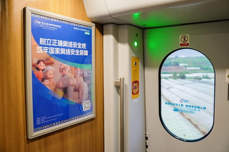 “网络安全为人民网络安全靠人民”主题车厢,搭配《网络安全口诀要牢记》顺口溜,将日常安全知识转化为易懂易记的内容,让“网络安全靠人民”从口号落地为简单易操作的生活习惯。“以高水平安全守护高质量发展”主题车厢,以2025年国家网络安全宣传周活动主题为核心内容,重点传递“安全是发展的前提,发展是安全的保障”这一发展理念,引导乘客树立正确的“网络安全观”。“网络空间命运共同体”主题车厢,宣传构建网络空间命运共同体的“四项原则”和“五点主张”,倡导平等尊重、开放共享、和平安全的网络空间治理理念。