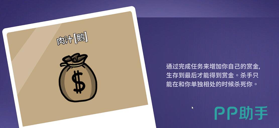 肉汁是鹅阵营的角色,主要任务就是围绕赏金系统进行。完成地图里的任务后可以积累赏金,完成的任务数量愈多,最后结算的时候能够获得的银币奖励也会更加丰厚。