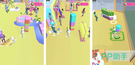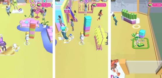模拟经营+换装融合玩法,玩家经营一家原创服装工作室。从基础裁剪、面料选择、款式设计起步,逐步扩展门店规模、升级制作设备、招募设计助理。所有操作采用极简触控逻辑,无复杂UI干扰,支持360度旋转查看成衣效果,强化空间建模与立体穿搭真实感。