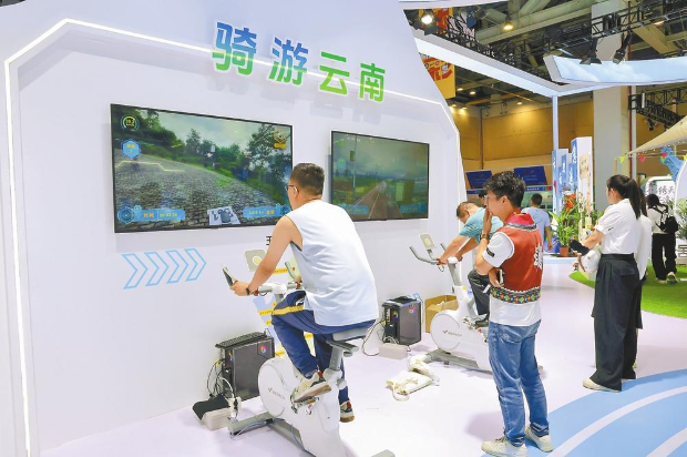 “虚拟骑游云南”体验区。 记者 娄莹 摄