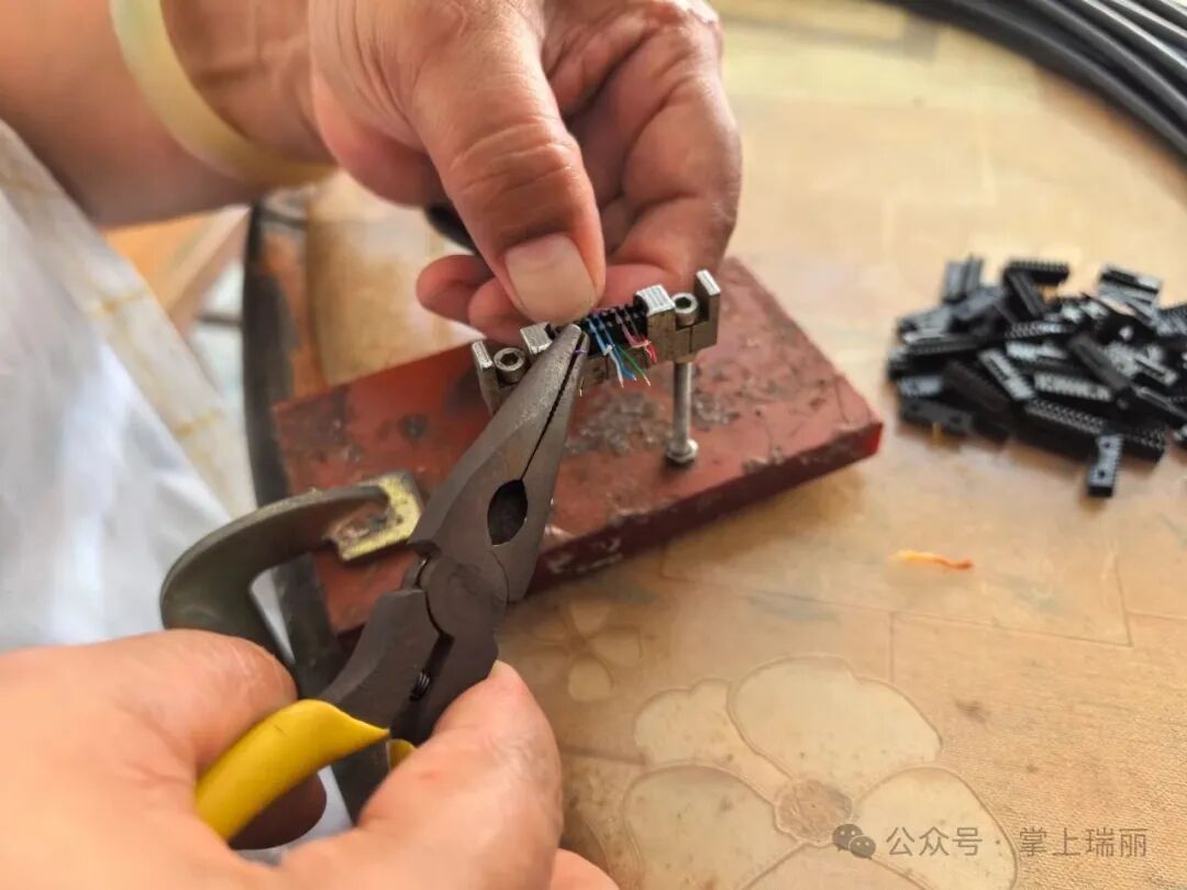 在抵边村寨土育村民小组,75岁的村民跑洋鲁在家熟练地加工电视数据线,手上的动作有条不紊,一件件产品渐渐成型。“这工作简单又轻巧,我们老人也能做,既能照顾家,又能挣到钱,心里踏实。”跑洋鲁说,她和女儿每天利用闲暇时间加工,月增收1500元。