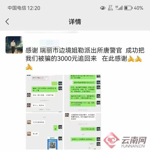 “感谢姐勒派出所的唐警官,帮我们把被骗的3000块钱追了回来!”河南货车司机李师傅在朋友圈的文字直白又热乎,配图是与民警的聊天记录和转账截图,引来好友点赞评论。