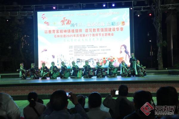 云南网讯(记者 牟燕红)9月10日,云南省昆明市石林彝族自治县石林街道“以教育家精神铸魂强师•谱写教育强国建设华章”教师节主题晚会暨“石林欢歌 四季村晚”秋季文化惠民演出温情启幕。石林县老年大学的学员们以饱满热情登台献艺,用独具特色的表演为现场观众带来一场视听盛宴,展现了新时代老年人的精神风貌与对教育事业的深情礼赞。
