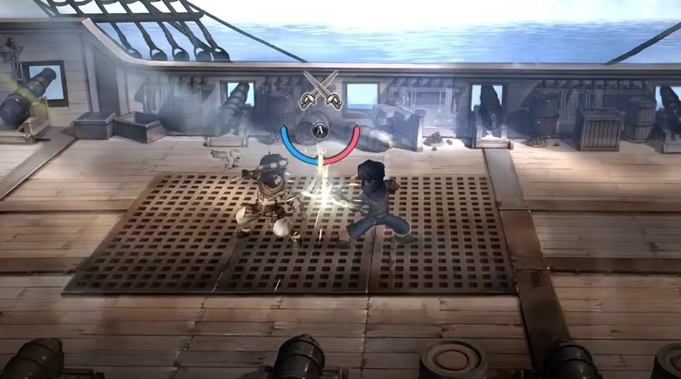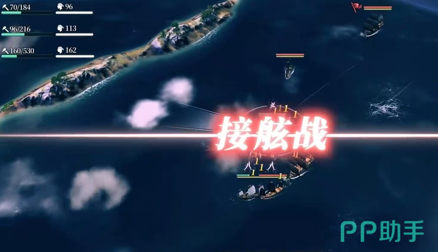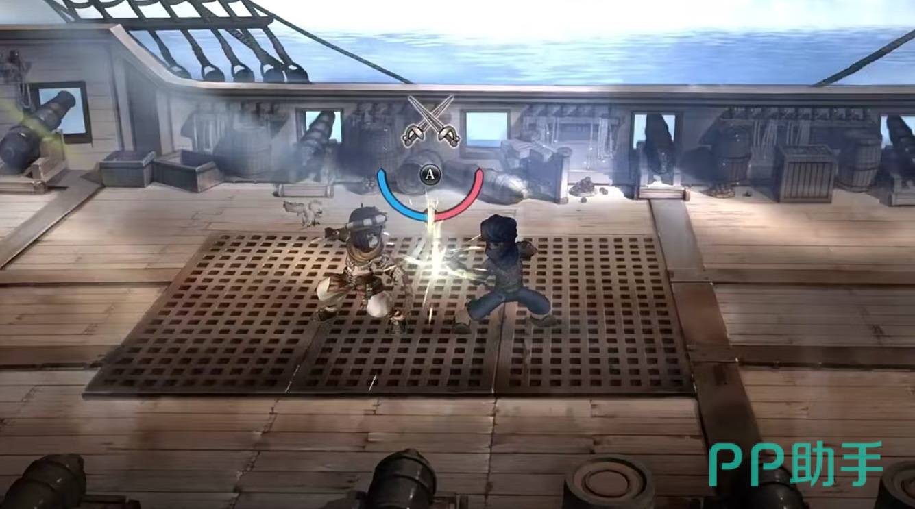 有一点要提前说清楚,那就是接舷战和白刃战是两个不同的战斗方式,但是这两者有相应的顺序,所以也会被归为一类。当玩家在海上进行战斗时,两方船体距离贴近,就会直接触发接舷战,这时会通过射箭的方式消耗对方的水手,当有一方水手全灭则船只会直接沉没。此时船只中的船尾楼和登船锁等设备就发挥出较大的作用。在接舷战持续一段时间,后就会进入到白刃战阶段。这时我方的海员将在船上和敌人进行决斗,进而触发双方船长的单挑。